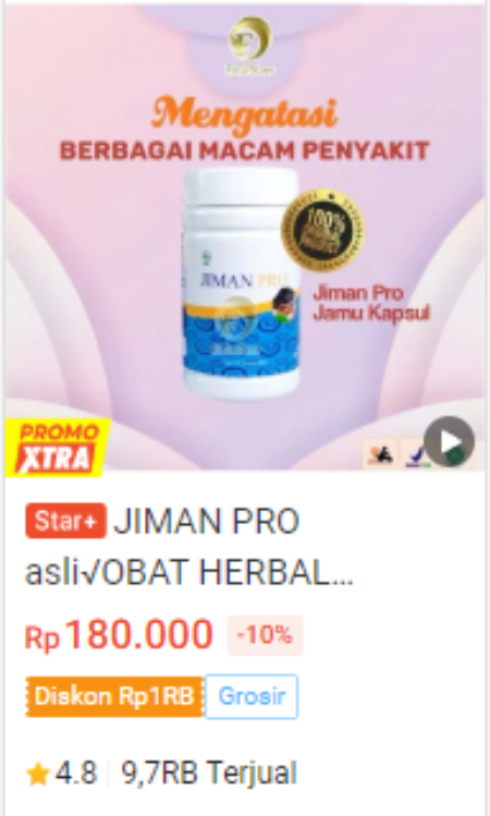Produk andalan, suplemen keluarga untuk menjaga kebugaran dengan kandungan 100% bahan alami. Telah bersertifikat BPOM, Halal MUI, dan memenuhi standar nasional